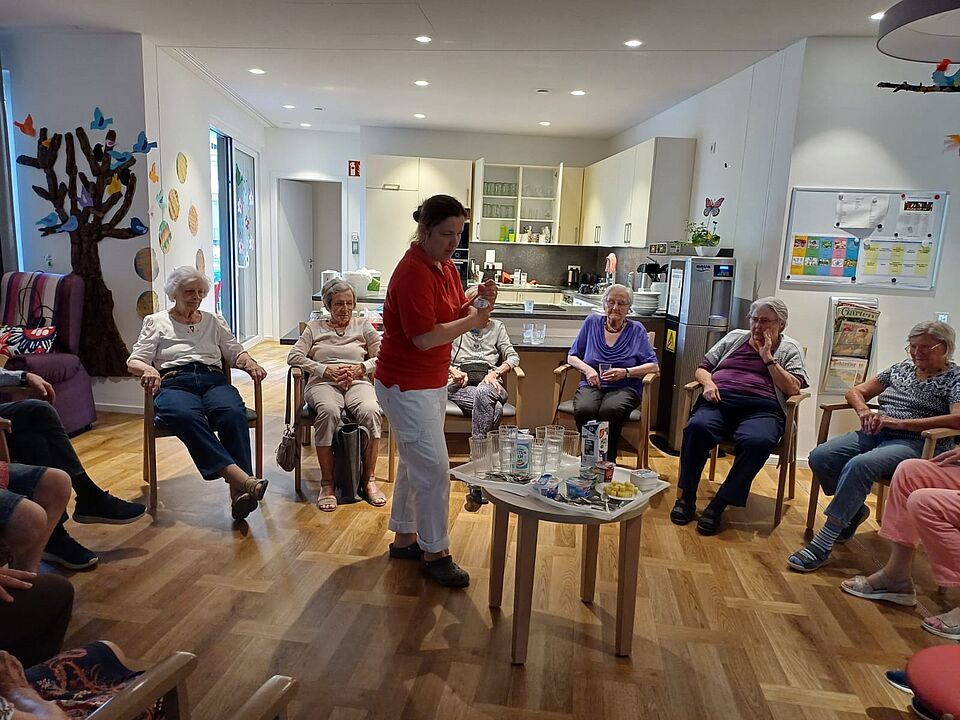 „Welches ist das erste Getränk, das ein Mensch trinkt?“ Die Lösung – „Muttermilch“. Es folgten knifflige Schätzfragen: Wie viele Liter Milch gibt eine Kuh am Tag? oder Was kann eine Molkerei aus 19 Litern Milch herstellen? Die Antworten führten zu spannenden Gesprächen, bei denen viele persönliche Erinnerungen ausgetauscht wurden – etwa an Zeiten, als der Milchmann noch täglich vor der Tür stand.