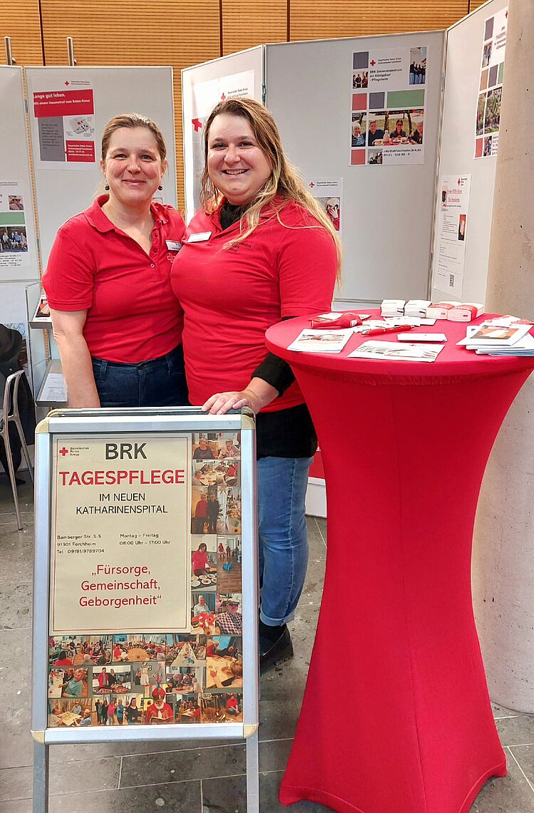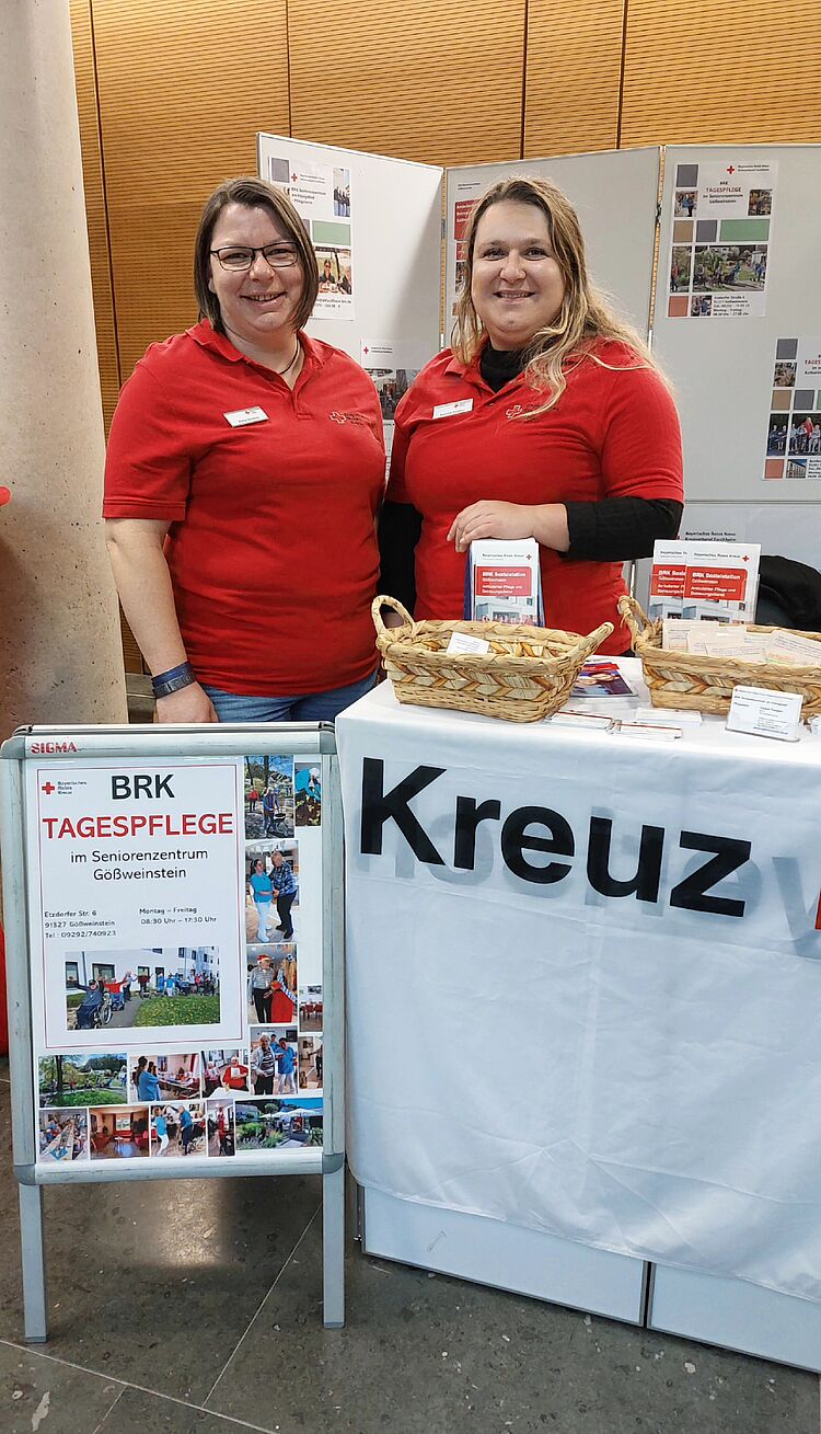 Während der Messe standen unter anderem Frau Katja Barthel (Ambulanter Pflegedienst Gößweinstein), Frau Amelie Rogner (Tagespflege im Neuen Katharinenspital sowie im Seniorenzentrum Gößweinstein) und Frau Katja Neudel (Tagespflege im Neuen Katharinenspital) des Besucherinnen und Besuchern für Fragen zur Verfügung. Viele Informationsbedürfnisse konnten dabei geklärt und Vorurteile rund um Pflege und Betreuung ausgeräumt werden.